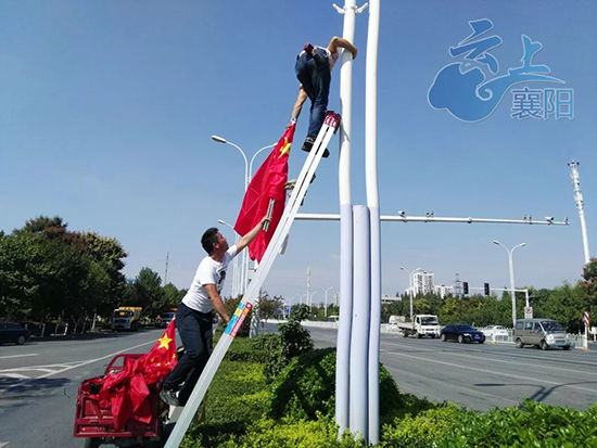 襄阳在城区内主要路段升挂国旗,