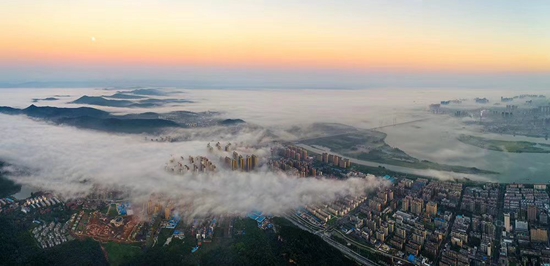 雨后襄阳惊现平流雾奇观,宛如仙境,壮哉!美哉!