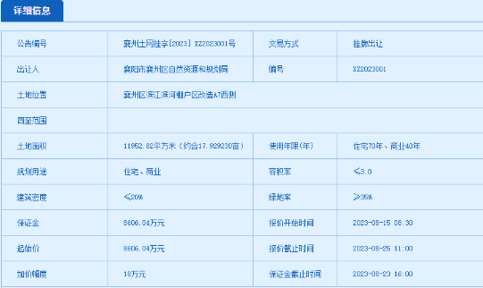 上新!襄州近30亩地块挂牌,起拍价超1.08亿!