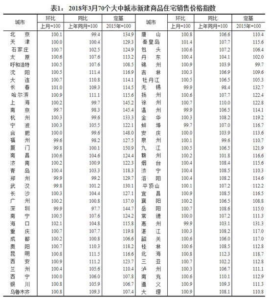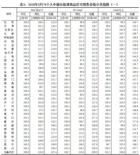 国家统计局今日发布了3月份70大中城市新建商品住宅销售价格。