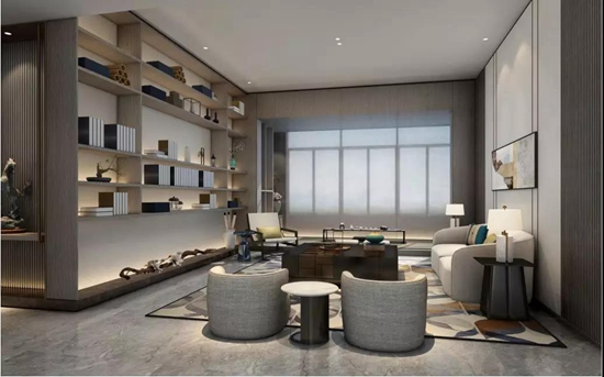 荷盘静静,清风习习,一动一静间,尽显迎宾区的克制与灵动。