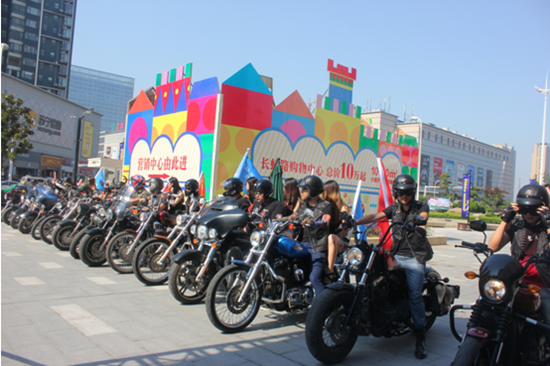 从南国城市广场出发,十几辆哈雷隆隆轰鸣