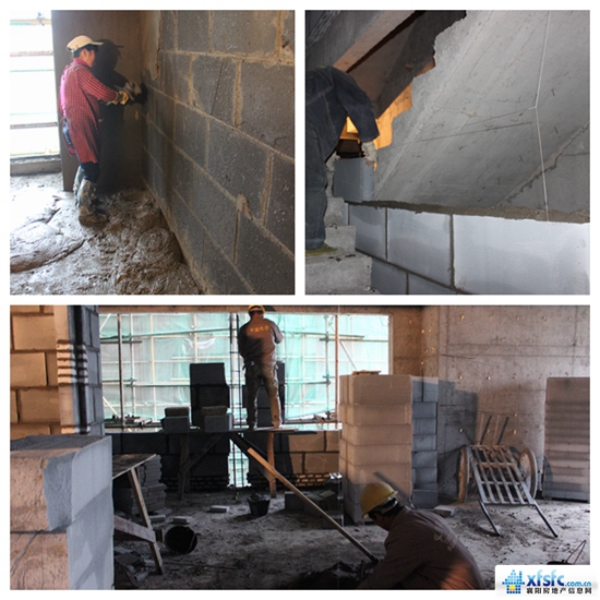 昊天广场项目的5# 6# 7# 8# 9#楼都已经封顶了,在进行内部的混凝土浇筑、墙体砌体施工和内外墙粉刷施工等工作。