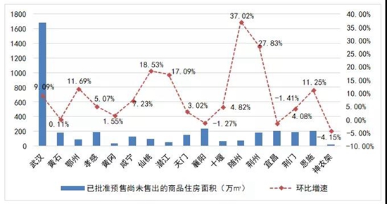 截至2019年9月末,湖北省17个市州城区的库存商品住房合计363850套,库存商品住房面积3757.10万平方米,住房库存面积环比增加7.96%。