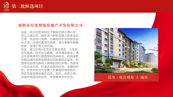 会议还对第十届“广厦奖”湖北第一批获奖项目、第一批候选项目、第二批候选项目、第三批候选项目以及第一批获奖项目主要完成人进行了表彰。伴随音乐的响起,第十届“广厦奖”湖北获奖项目宣传片的播放聚焦了全场领导嘉宾的高度关注。一个个“广厦奖”优质项目、一位位行业市场风云人物的亮相,铭刻了荆楚大地房地产行业发展的闪光足迹和领军面孔,展示了我省房地产业的卓越发展成果。